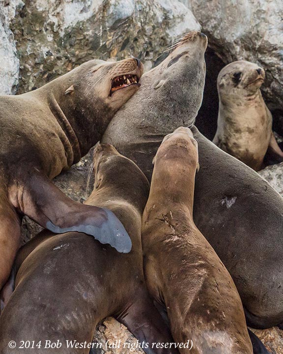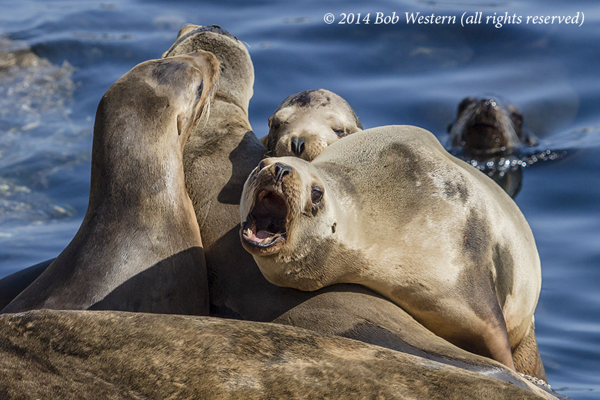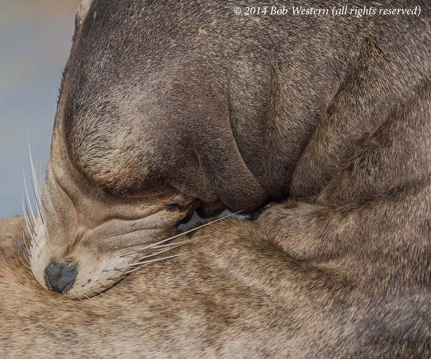 California sea lions, Zalophus californianus, complain loudly, then go back to sleep a few moments later.