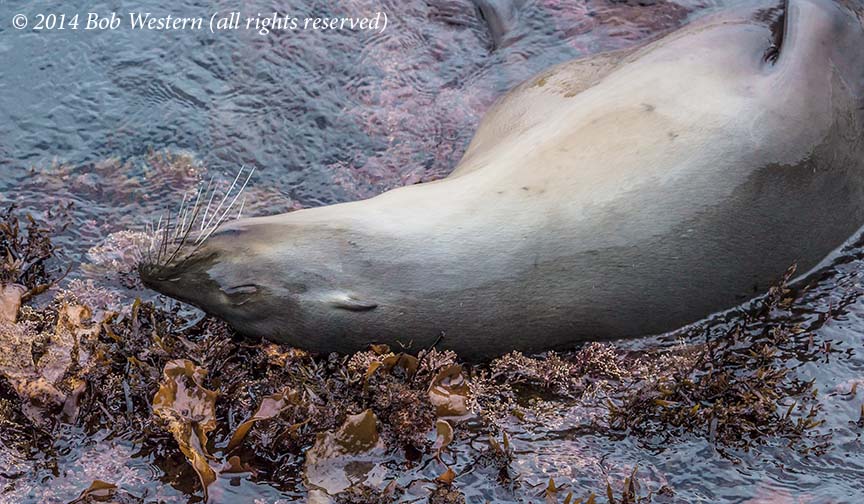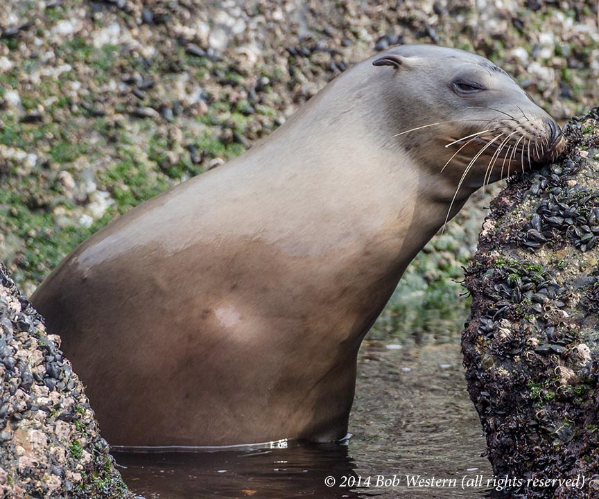 A California sea lion, Zalophus californianus, with a nice cushy granite pillow, Monterey, CA.