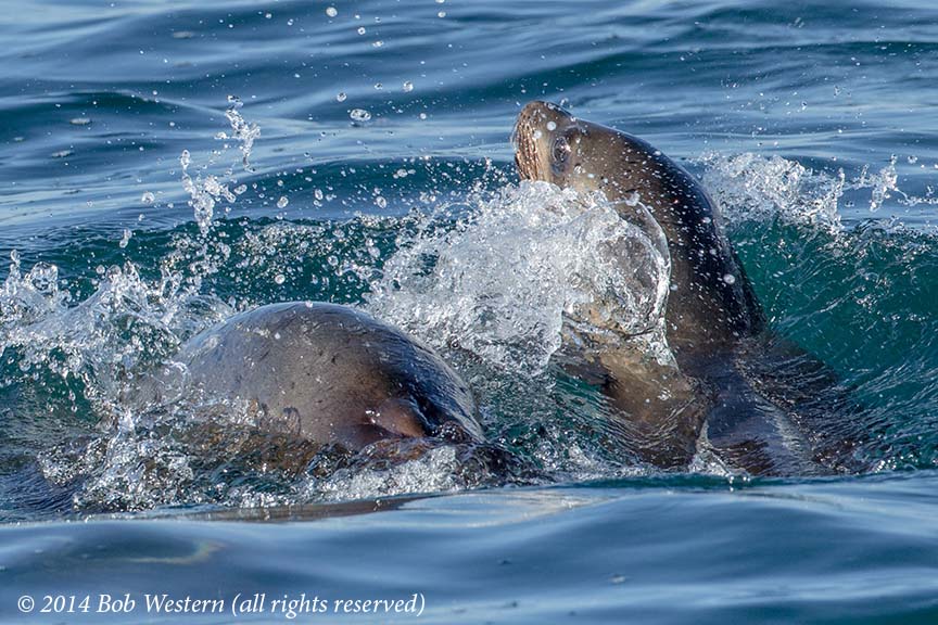 California sea lions, Zalophus californianus, appears to have asian calligraphy when splashed, Monterey, CA.