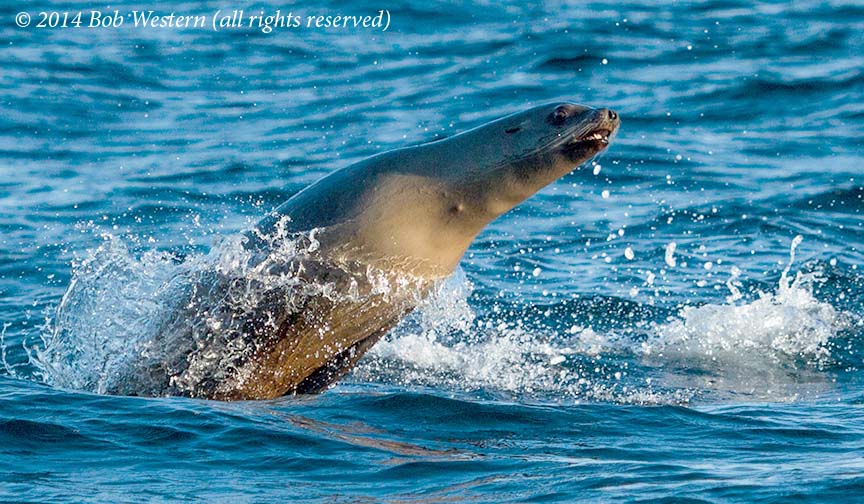 A young California sea lion, Zalophus californianus, "porpoising," at full gallop.