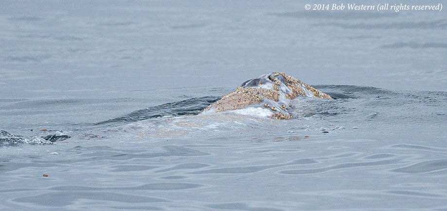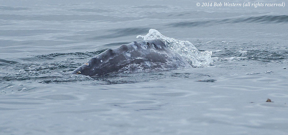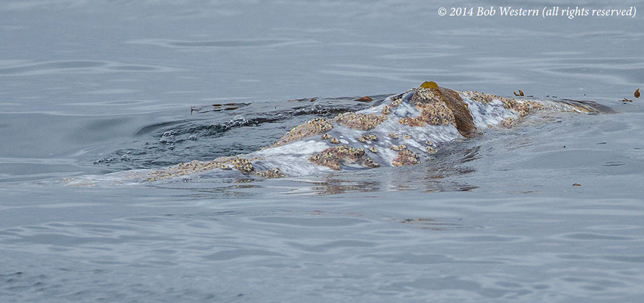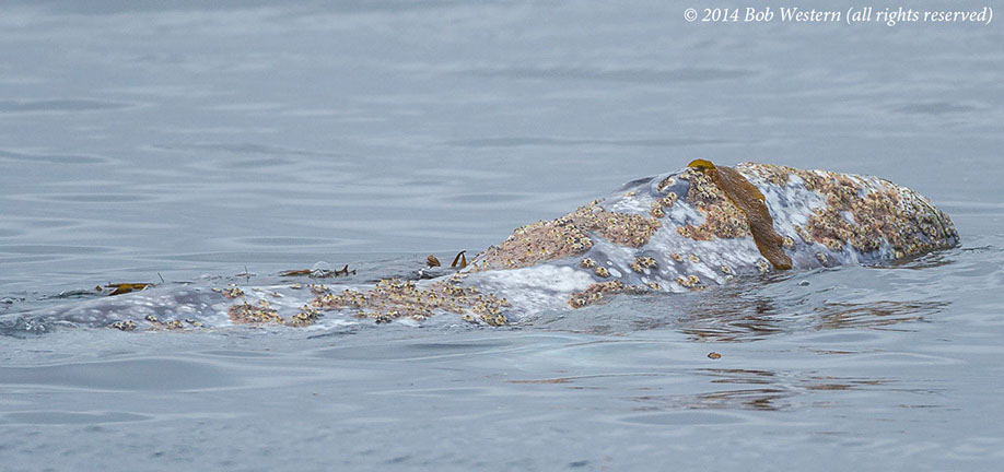 * This juvenile gray whale was seen off San Diego in July 2014, on the Big Sur coast in late July, and off Santa Cruz in early August. I photographed it swimming among kayakers, and scuba divers, off San Carlos Beach on August 29th. It's a mystery why it is still in California waters, when it should be in Alaska. It may have lost it's mother and never went north. Although it was reported as undernourished at earlier sightings, it appeared healthy in Monterey, except for a heavy infestation of whale lice.