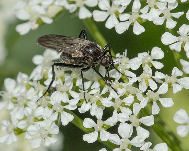 Unknown fly on Hemlock flowers. Drop me a line if you know the name of the fly.