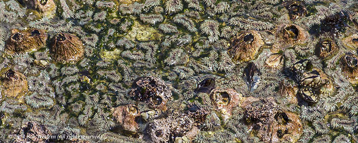 Anthopleura elegantisimma, anemones, & barnacles, Tetraclita rubescens, & Pollicipes polymerus.