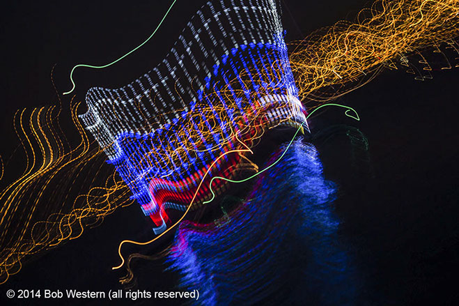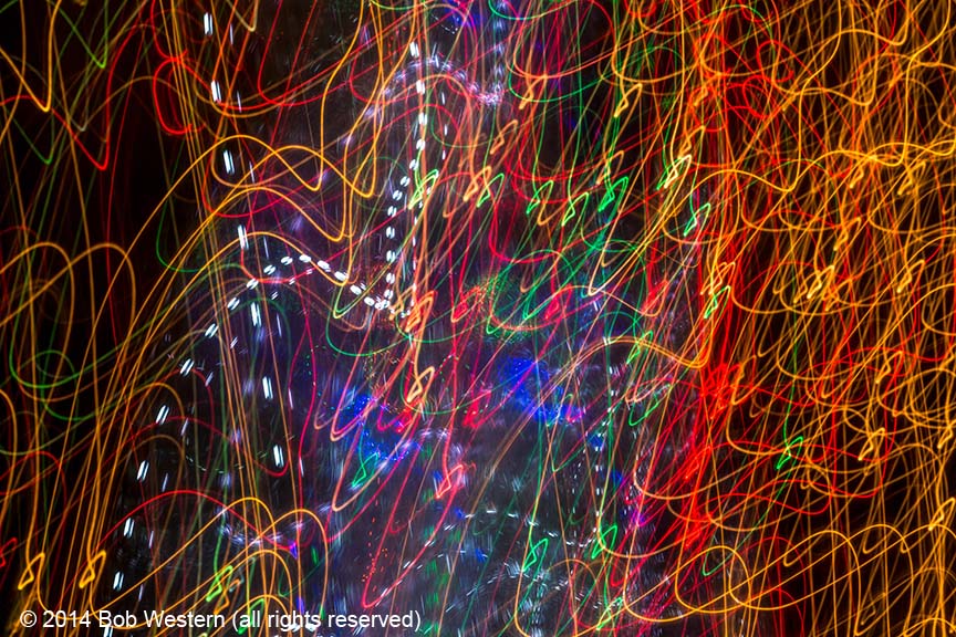 Light Paintings are images of city lights, christmas displays, street lights, etc. that are photographed with very slow shutter speeds. The camera is then moved by hand to create various patterns and visual textures. Like fingerprints and snow flakes, each image is unique and unrepeatable.