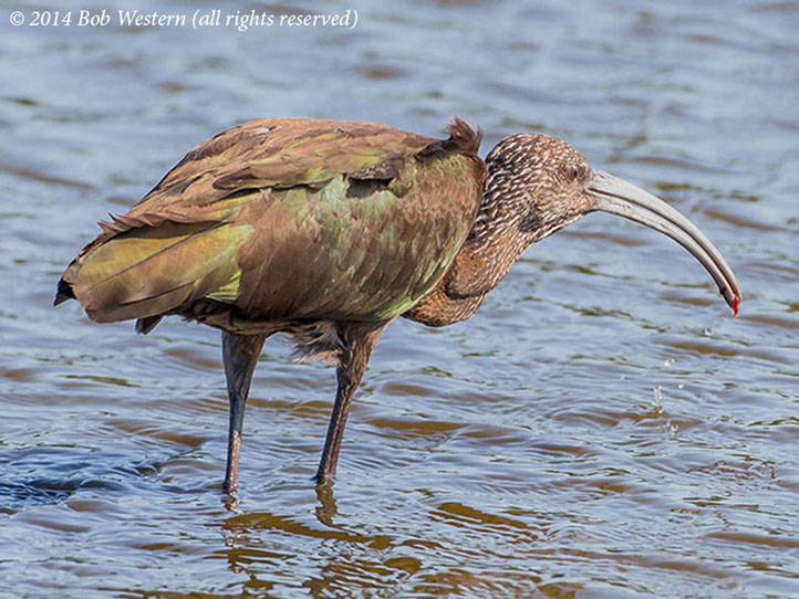 A White-faced Ibis, Plegadis chihi, Crespi Pond, Pacific Grove, CA.