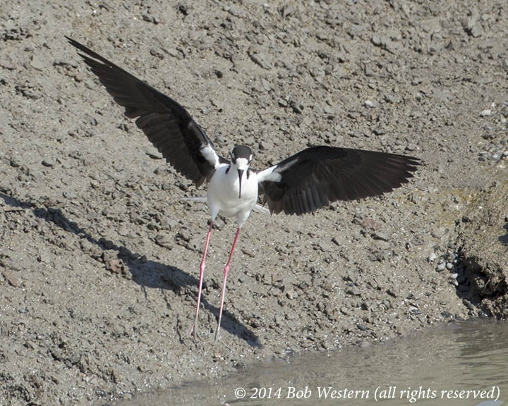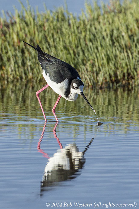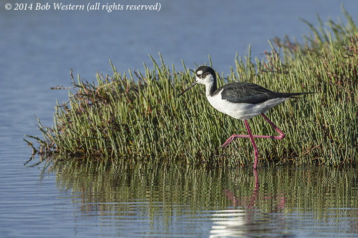 A Black-necked Stilt, Himantopus mexicanus, Palo Alto Baylands, Palo Alto, CA.
