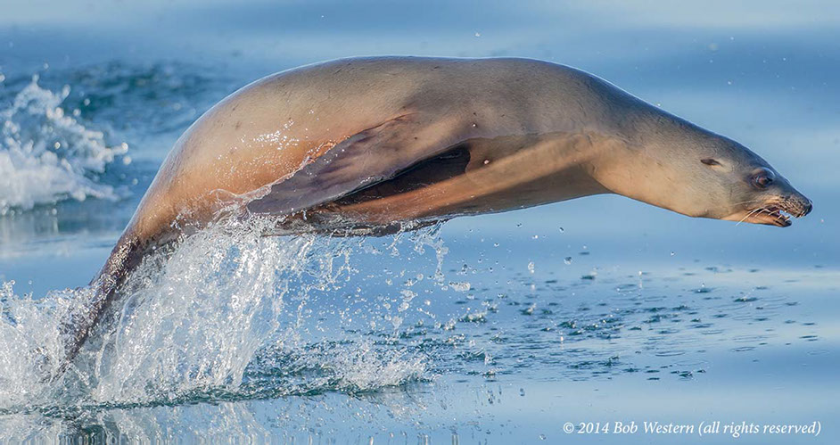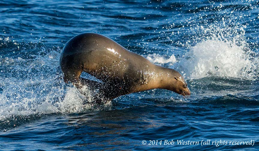 A young California sea lion, Zalophus californianus, "porpoising," at full gallop.