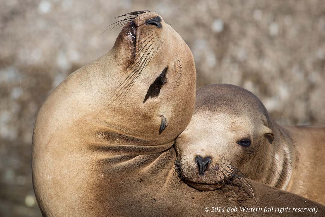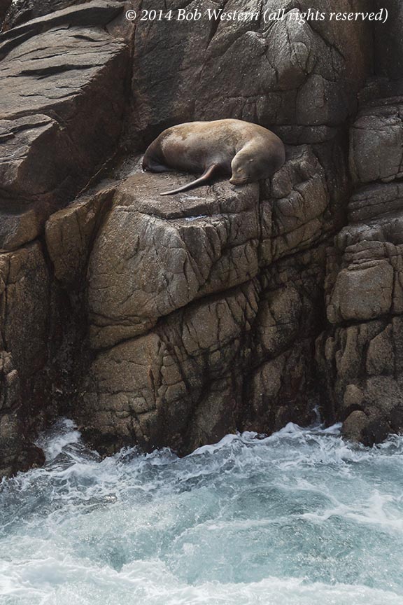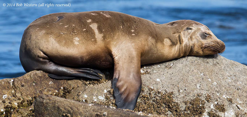 A California sea lion, Zalophus californianus, with a nice cushy granite pillow, Monterey, CA.