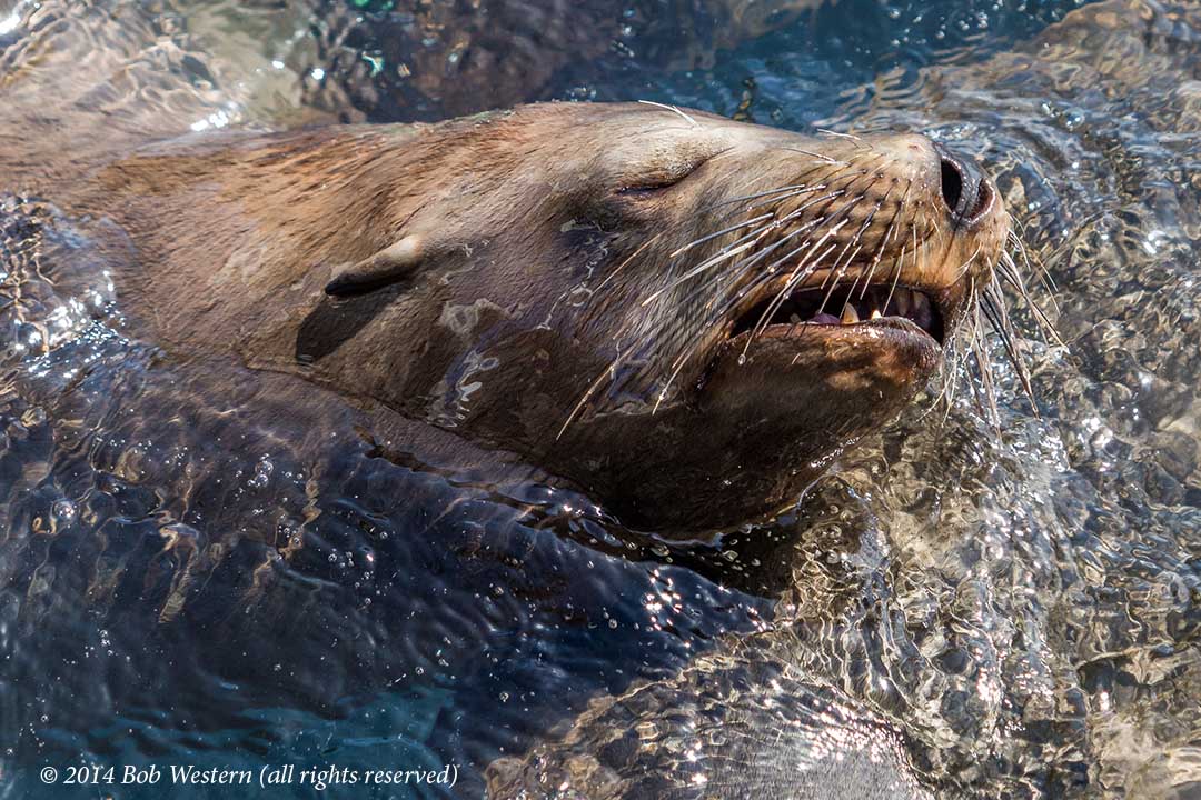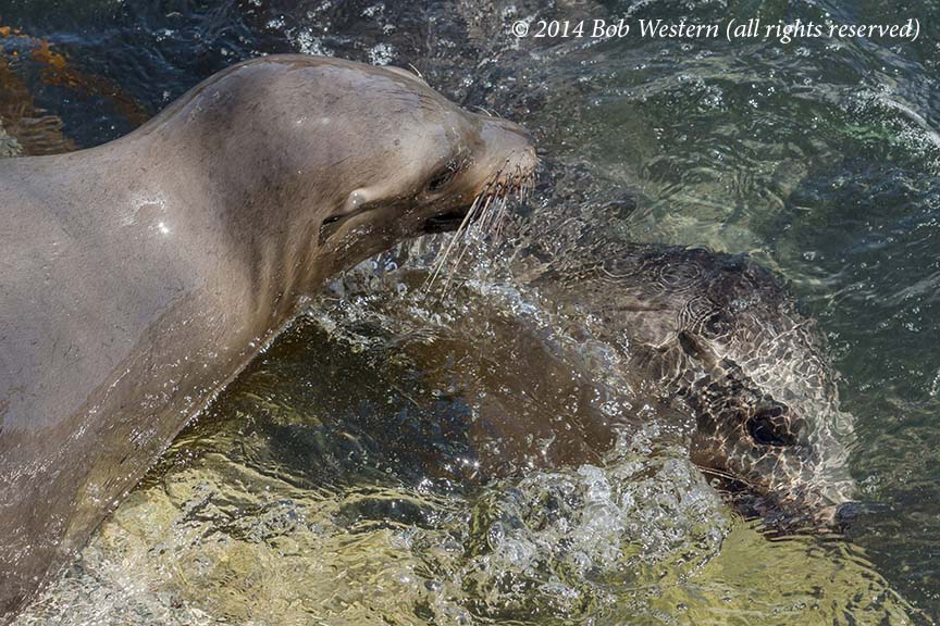 California sea lions, Zalophus californianus, appears to have asian calligraphy when splashed, Monterey, CA.