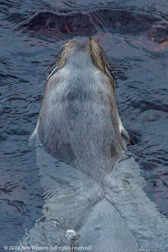 A California sea lion, Zalophus californianus, at the beginning of "porpoise" behavior.