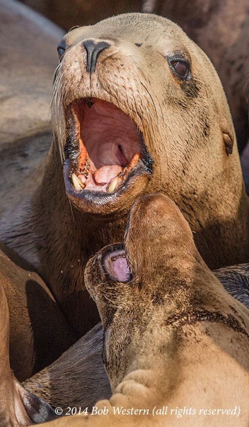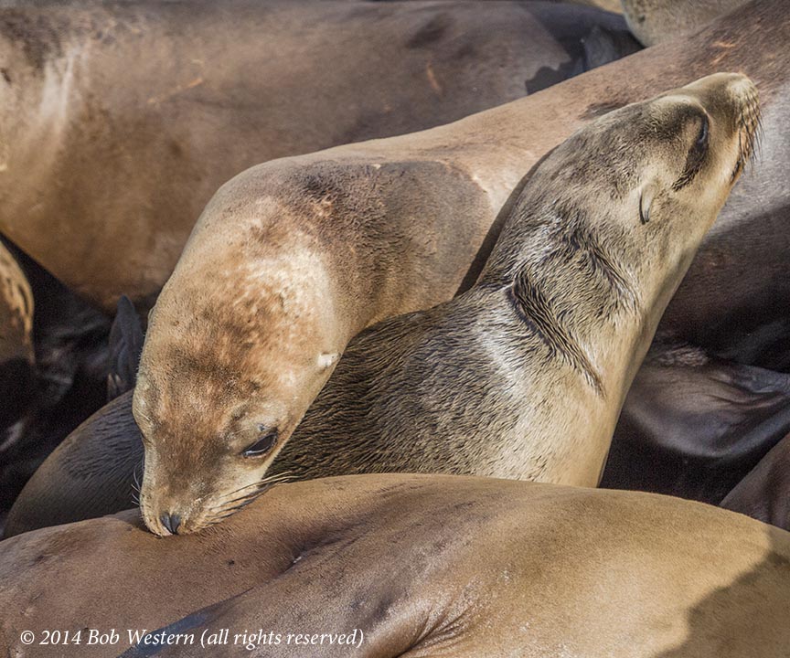 California sea lions, Zalophus californianus, complain loudly, then go back to sleep a few moments later.