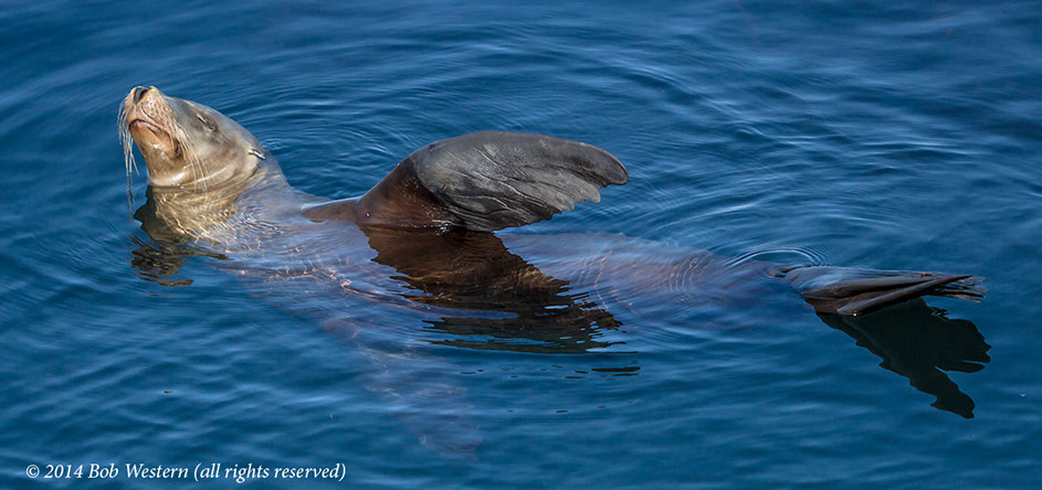 California sea lions often rest with a flipper sticking out of the water. It is their version of solar heating while inactive.