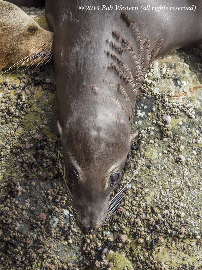 Healing cuts on the flipper of a California sea lion, Zalophus californianus, Monterey, CA.