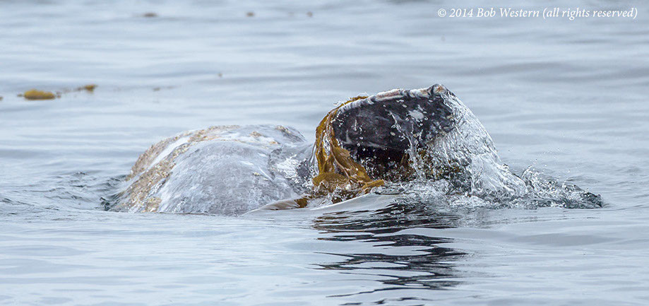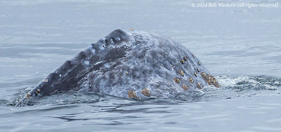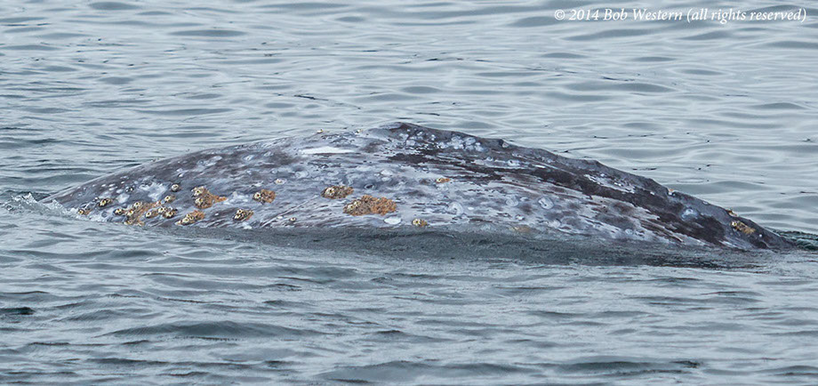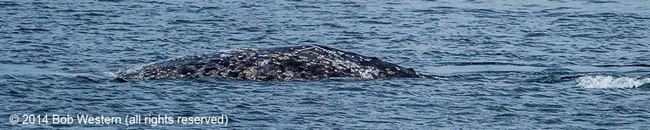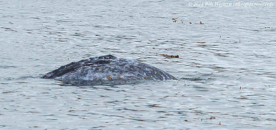 * This juvenile gray whale was seen off San Diego in July 2014, on the Big Sur coast in late July, and off Santa Cruz in early August. I photographed it swimming among kayakers, and scuba divers, off San Carlos Beach on August 29th. It's a mystery why it is still in California waters, when it should be in Alaska. It may have lost it's mother and never went north. Although it was reported as undernourished at earlier sightings, it appeared healthy in Monterey, except for a heavy infestation of whale lice.