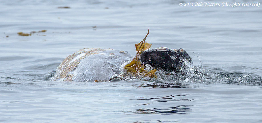 Juvenile Gray Whale, Eschrichtius robustus, rolling on it's