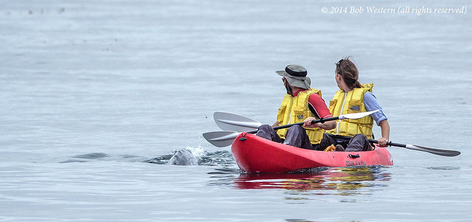 to surprised kayakers, off San Carlos Beach, Monterey, CA. *Note