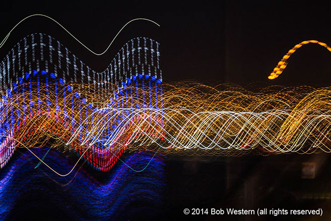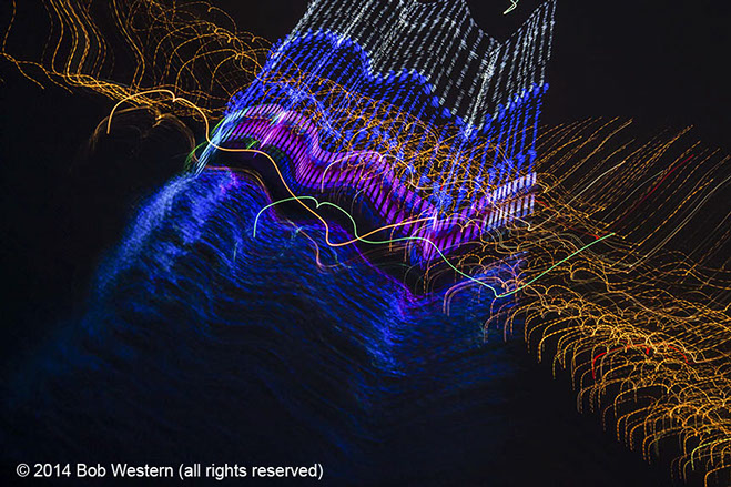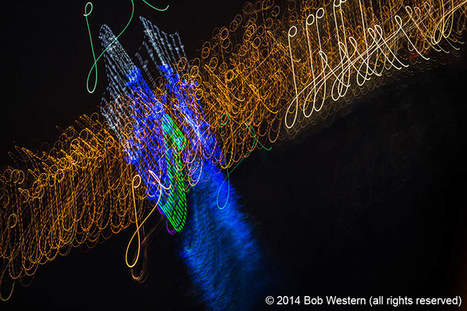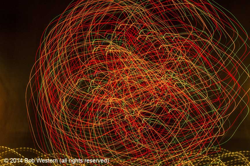 Light Paintings are images of city lights, christmas displays, street lights, etc. that are photographed with very slow shutter speeds. The camera is then moved by hand to create various patterns and visual textures. Like fingerprints and snow flakes, each image is unique and unrepeatable.