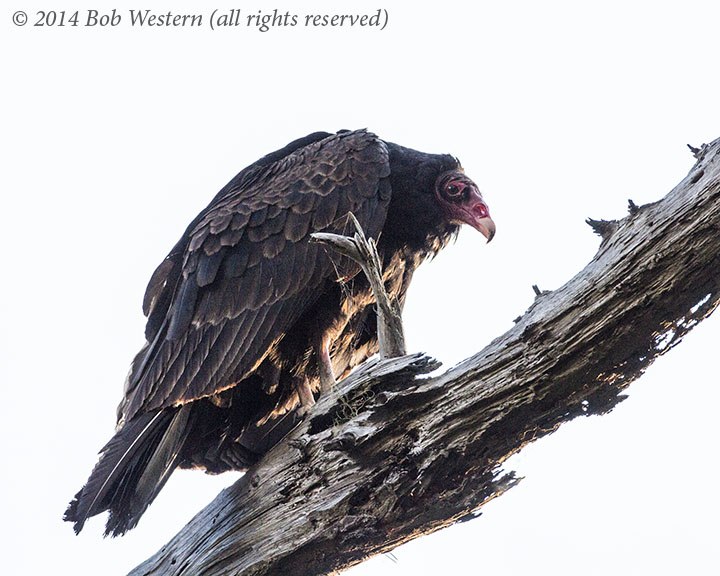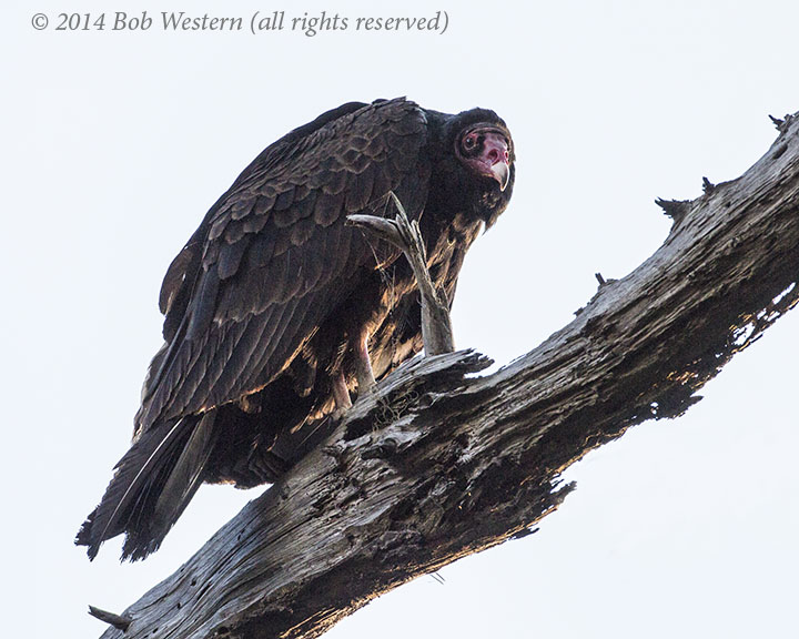 A Turkey Vulture, Cathartes aura, in a dead Monterey Pine, Point Lobos State Reserve, CA.
