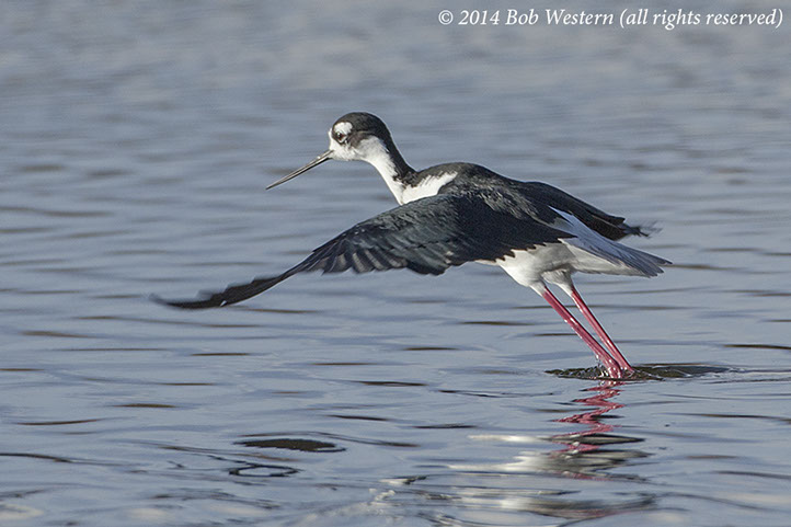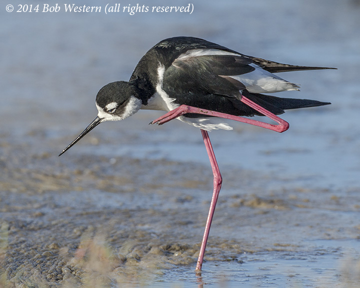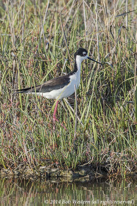 A Black-necked Stilt, Himantopus mexicanus, Palo Alto Baylands, Palo Alto, CA.